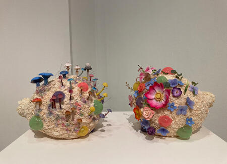 Evangeline was inspired by biological and natural concepts. Hence, all the parts in the final piece are handmade. The final artwork resembles two neurons, which are both similar and different. Since they both have the same shape and texture but different themes, with one side emphasising life and growth while the other emphasising death and decay. This symbolises the paradoxical ideas in nature which encourages viewers to come to terms with their “imperfections” as it is only natural.